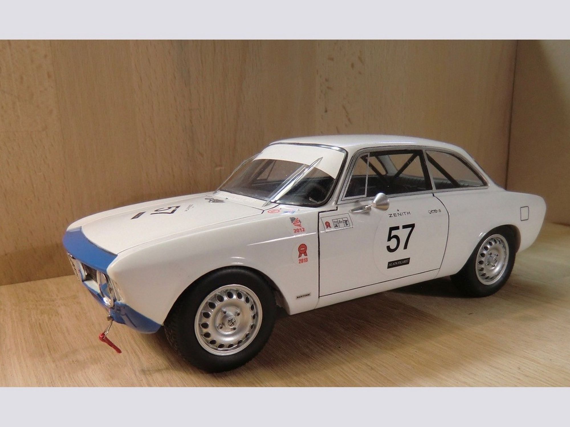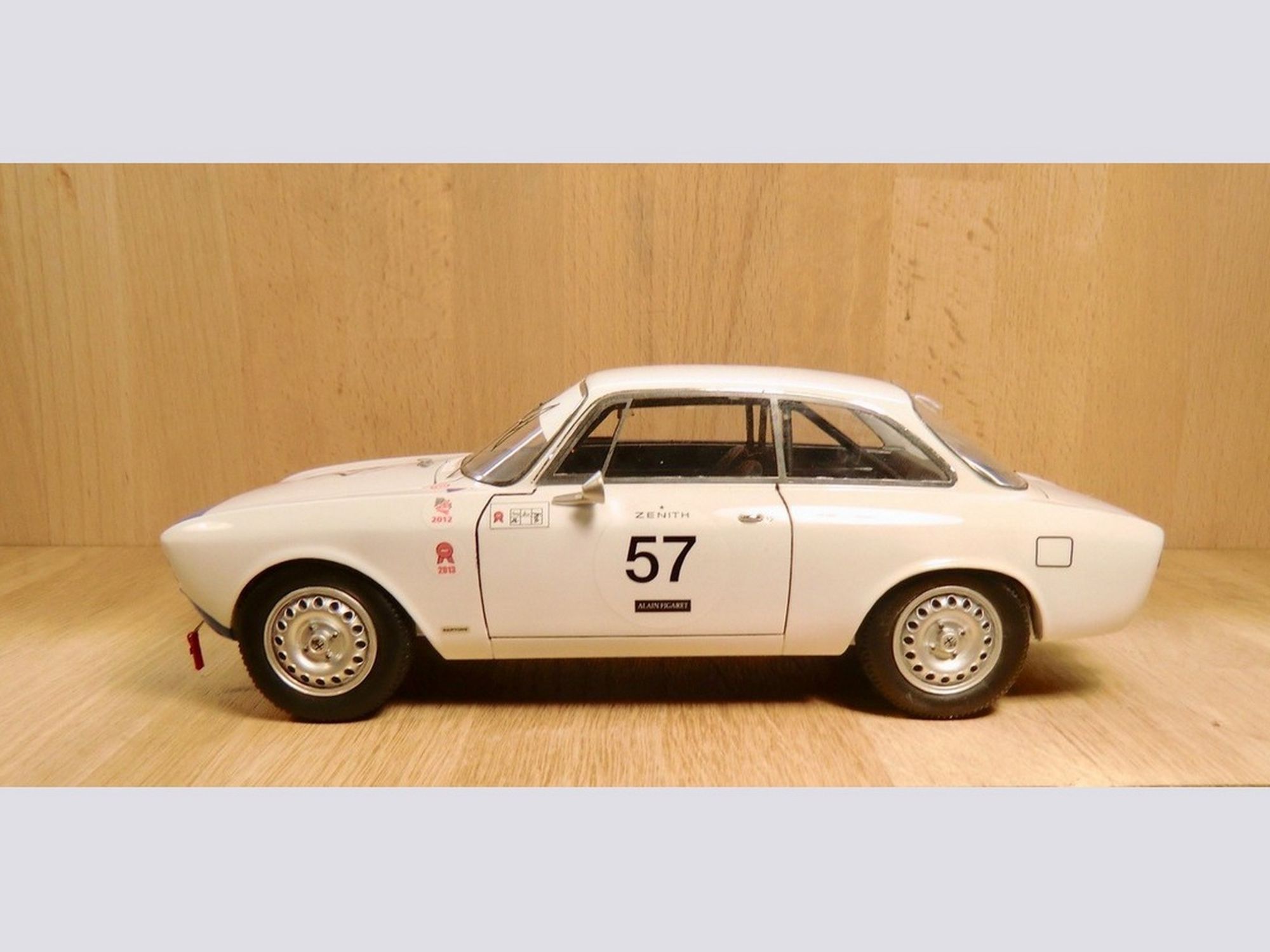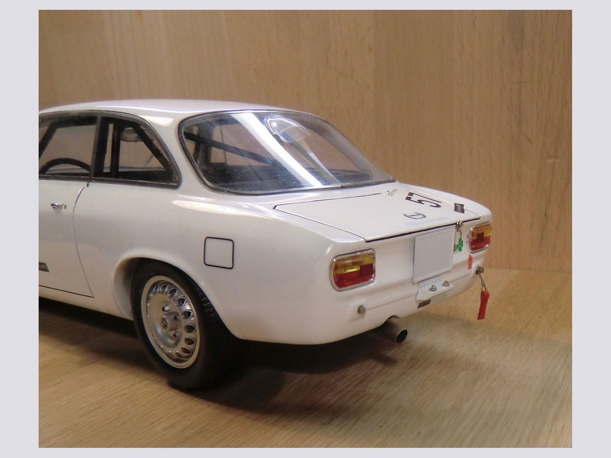 The body was completely stripped from all paint to be able to enlarge the rear wheel covers. The front was completely changed as was the rear end of the car and the rear window, this to get as close as possible to the features of the real car.
