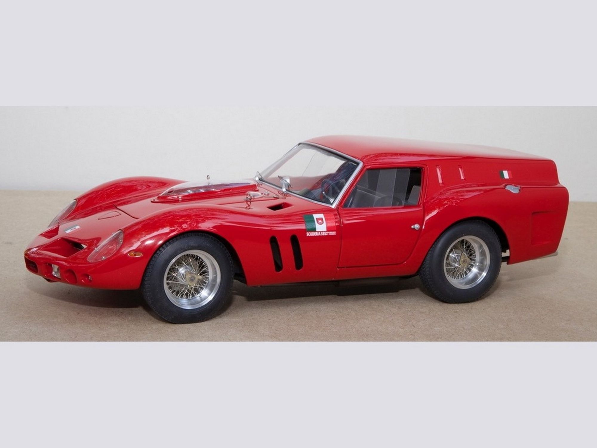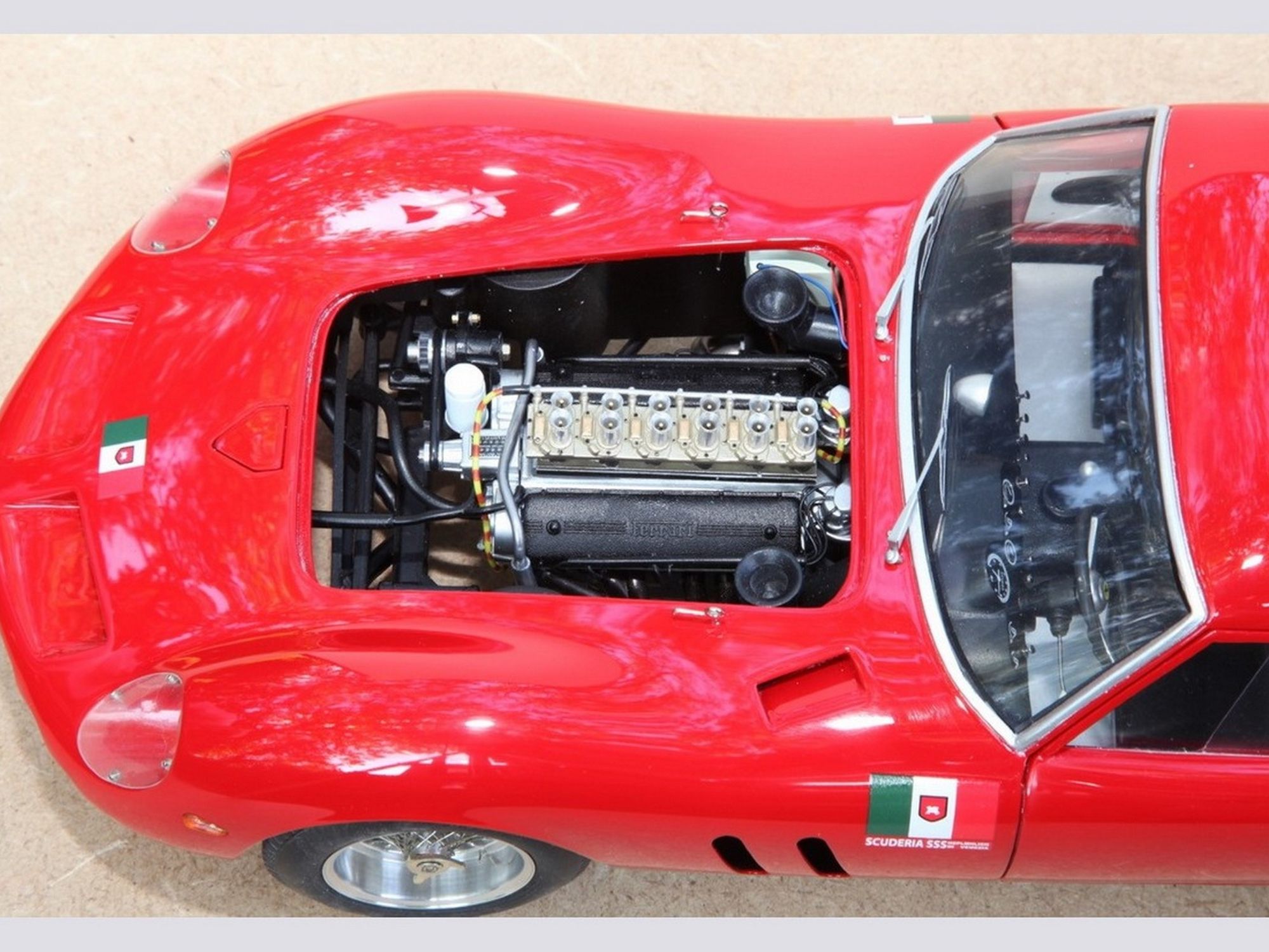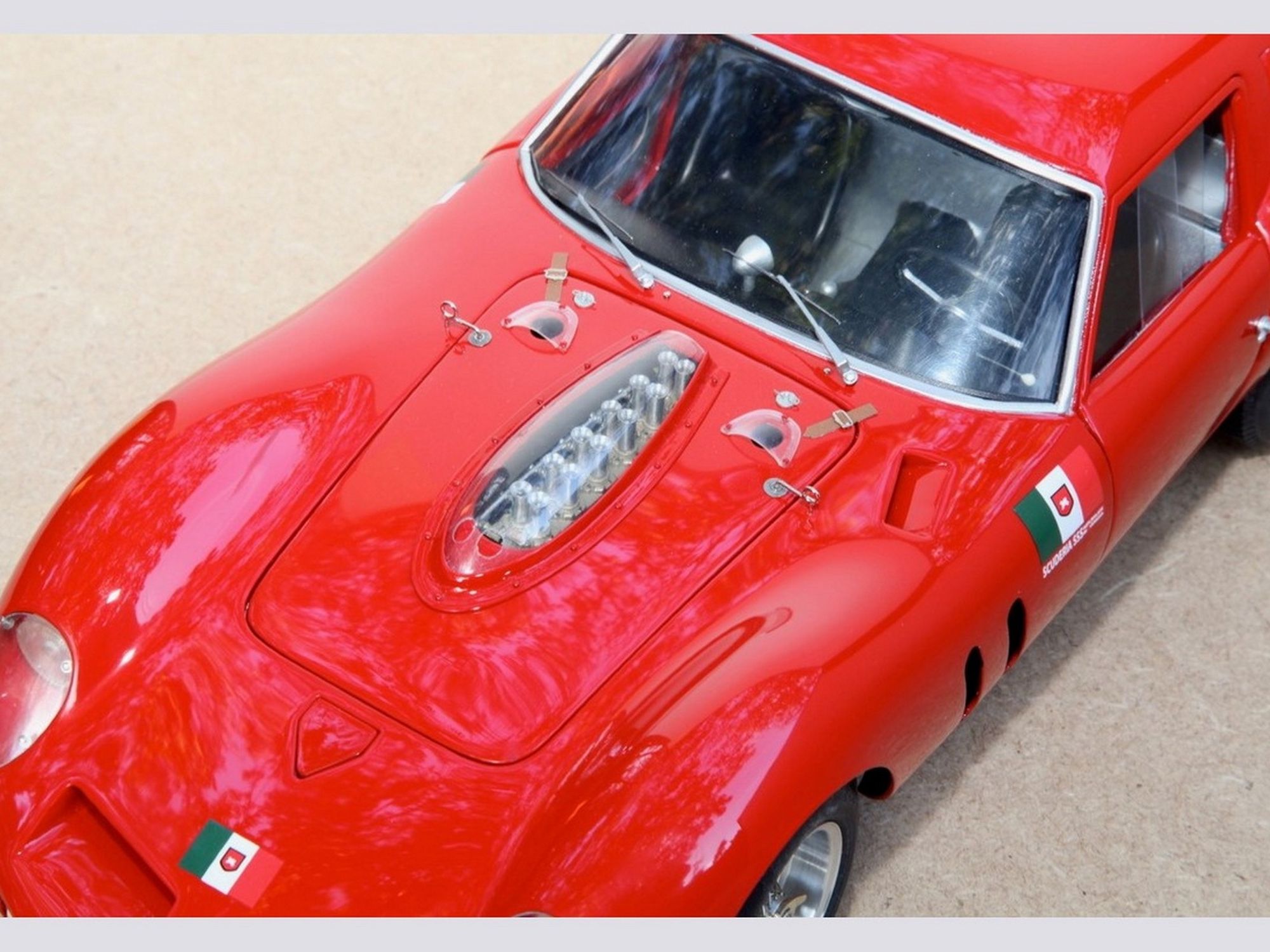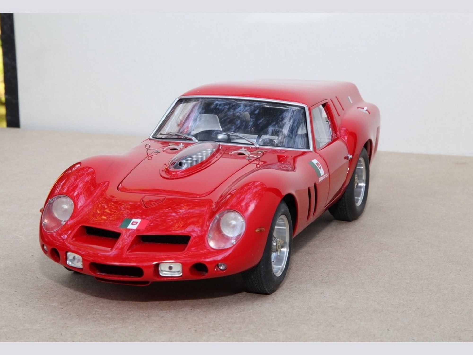 The whole placed over a modified Revell 250GTO frame.