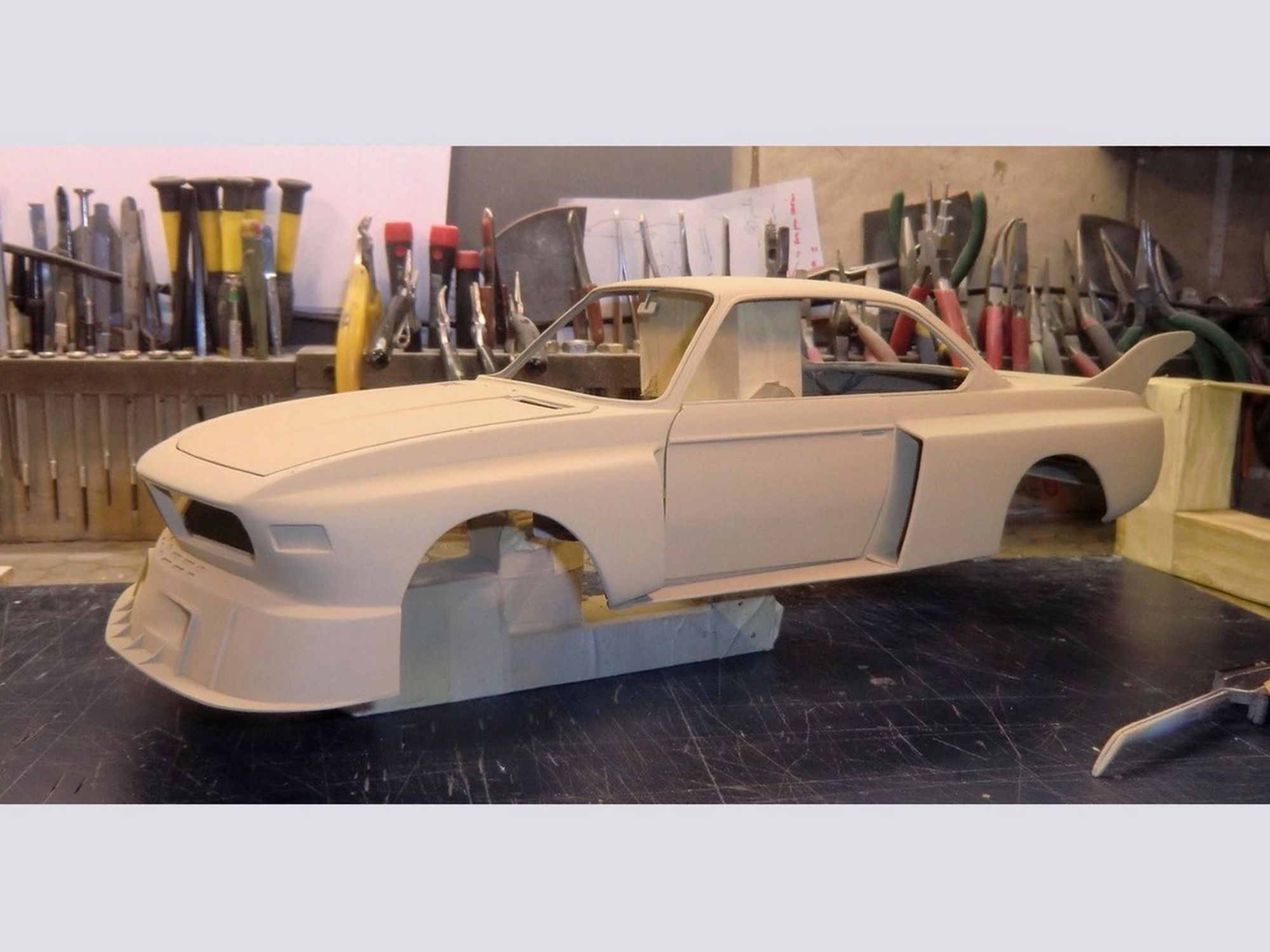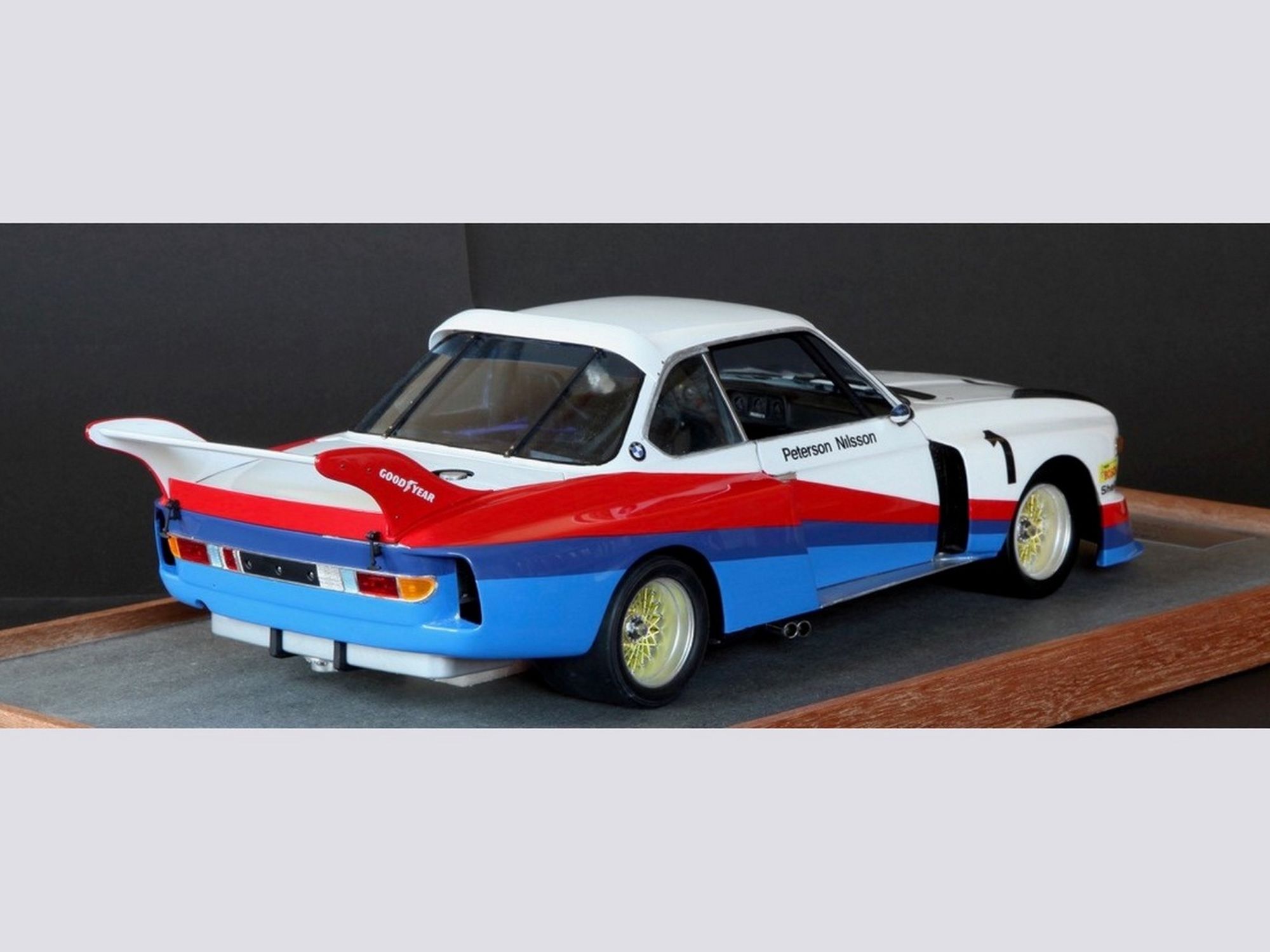 The whole body was transformed to obtain the exact features as are on the real car. All stripes were painted on the body for a crisp out lining.